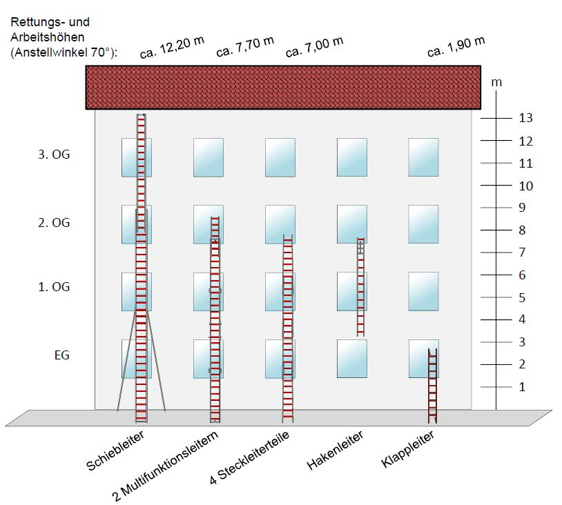 | Anzahl Leiterteile | Rettungshöhe | Leiterlänge | Masse (max.) | |