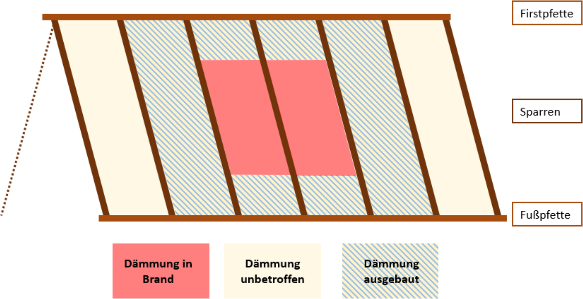 - Ausgebaute Dämmstoffe müssen entfernt werden, um Wiederentzündung zu verhindern.