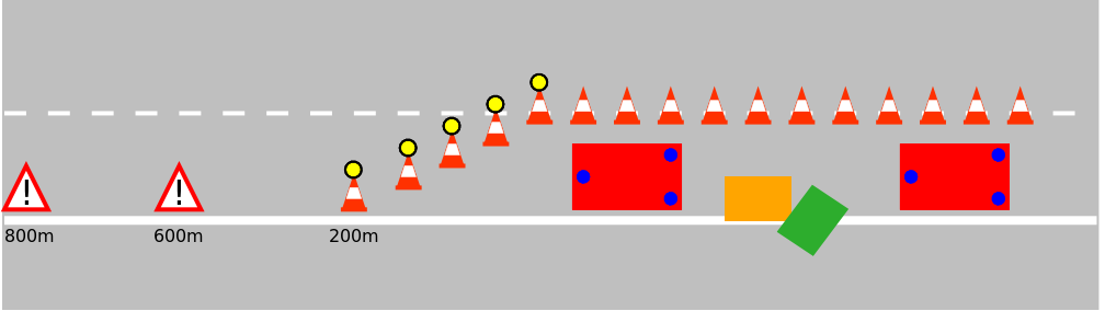 - Nicht benötigte Einsatzkräfte halten sich hinter der Leitplanke auf