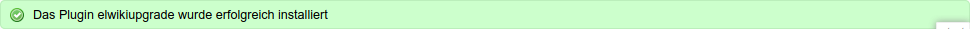 Klicken Sie dann auf Installieren. Nach einem kurzen Moment sollte ein grüner Banner erscheinen, der Ihnen die Meldung Das Plugin elwikiupgrade wurde erfolgreich installiert meldet: