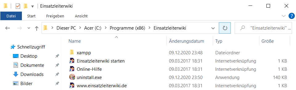 Wechseln Sie nach der Deinstallation wieder zum Ordner Ihres neuen Einsatzleiterwikis. Führen Sie die Datei Einsatzleiterwiki starten.cmd aus, um das Wiki zu starten.