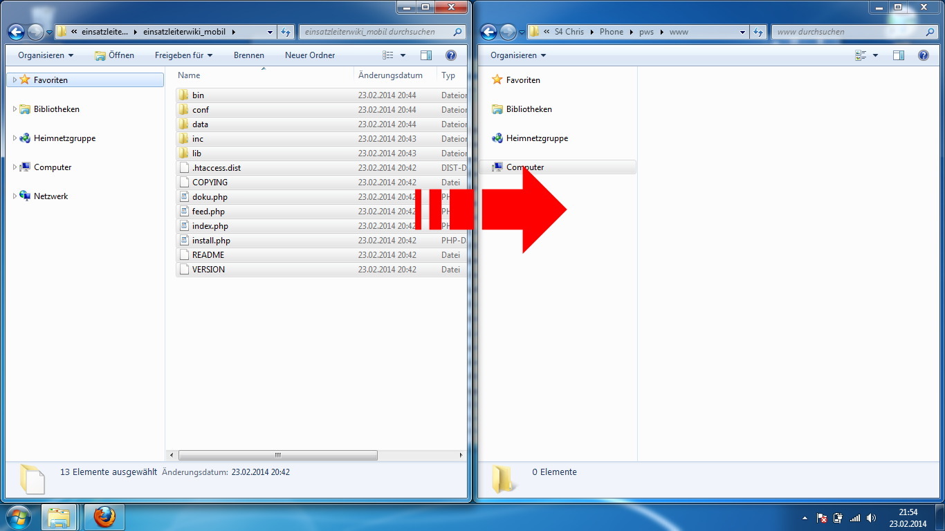 Nach diesem Schritt ist der Kopiervorgang für die Wiki-Software beendet. Zuletzt müssen noch die Einsatzleiterwiki-Daten in den Ordner integriert werden.