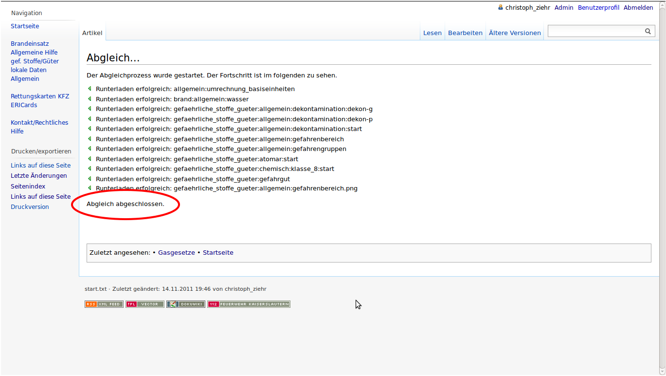 - sync-Plugin: Datenbestand des lokalen Wikis mit dem Einsatzleiterwiki-Server synchronisieren